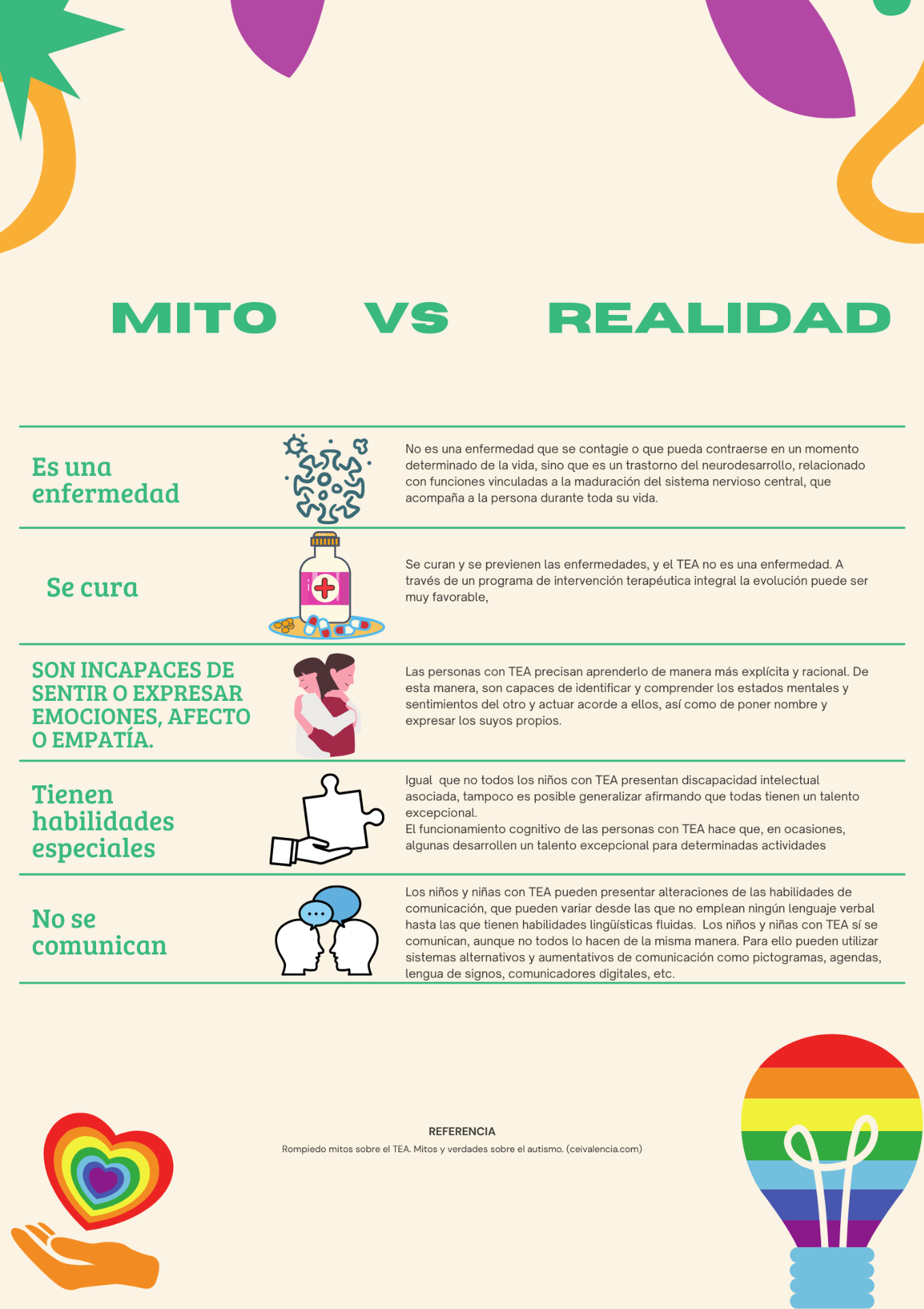 A continuación os dejo un cartel elaborado por mi en el que expongo algunos mitos y realidades sobre el TEA: